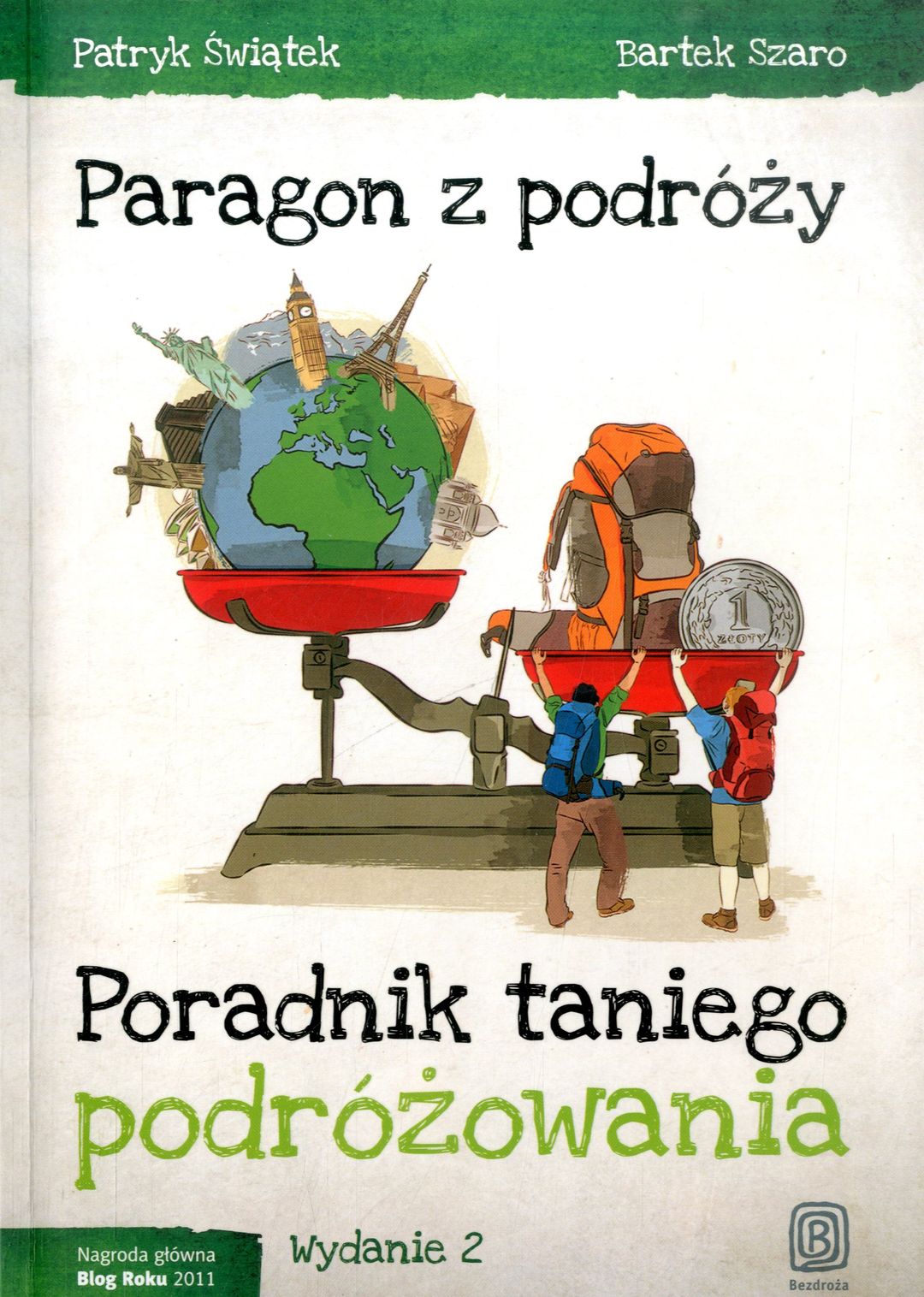 Paragon z podróży : poradnik taniego podróżowania / Patryk Świątek, Bartek Szaro. - Wydanie 2. - Gliwice : Helion, copyright 2014. - 261, [2] strony : ilustracje kolorowe ; 21 cm.