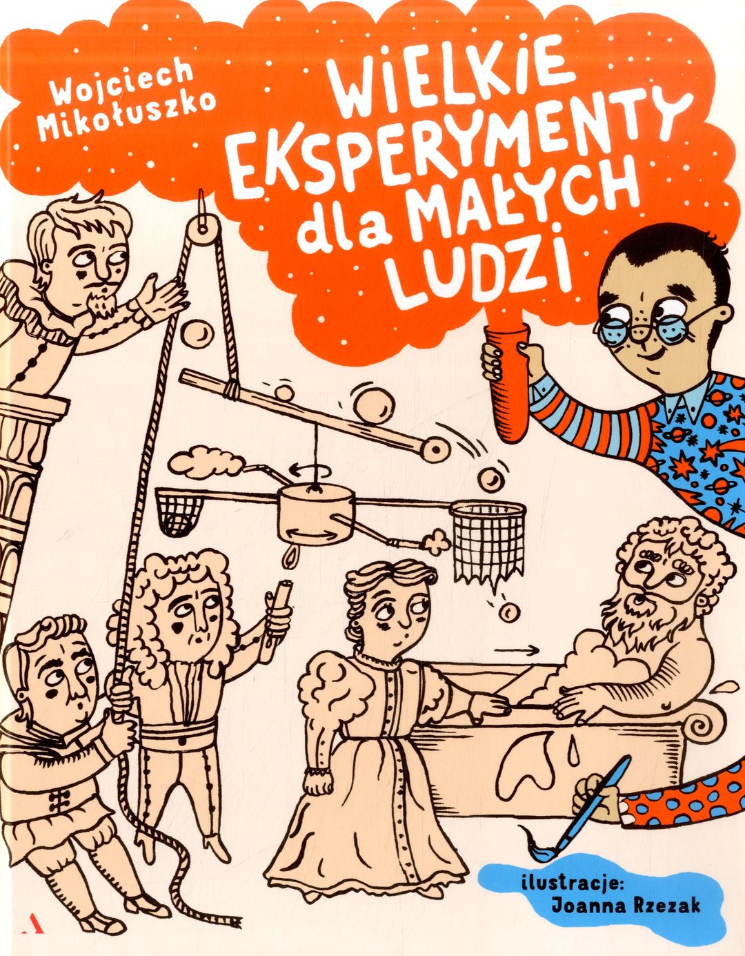 Aby opisać poczynania wielkich naukowców, których odkrycia zmieniły nasz świat, autor wgryzł się w historię nauki od starożytności aż po czasy współczesne - od Archimedesa, przez Galileusza, Newtona i Darwina, po Paula Harrisa. Dom autora zamienił się w jedno wielkie laboratorium. W kredensie i lodówce pojawiły się doniczki z kwiatami, na parapecie zamieszkały dżdżownice, w kuchni po stole walały się elektromagnesy, a w łazience moczyły się w occie kości i muszle. Kto by pomyślał, że autor przygotowując książkę musi skakać ze stołu, puszczać papierowe samoloty i opryskiwać się wodą z ogrodowego węża? Ale Mikołuszko nie mógł przecież namawiać dzieci do robienia eksperymentów, których sam by nie przetestował! Na szczęście wszystkie niezbędne przedmioty do ich wykonania znalazł w spiżarni, schowku z chemią gospodarczą, łazience i domowej apteczce. Uff, ciężka jest praca pisarza. Ale jaka ciekawa! A efekt? Zobaczcie sami!