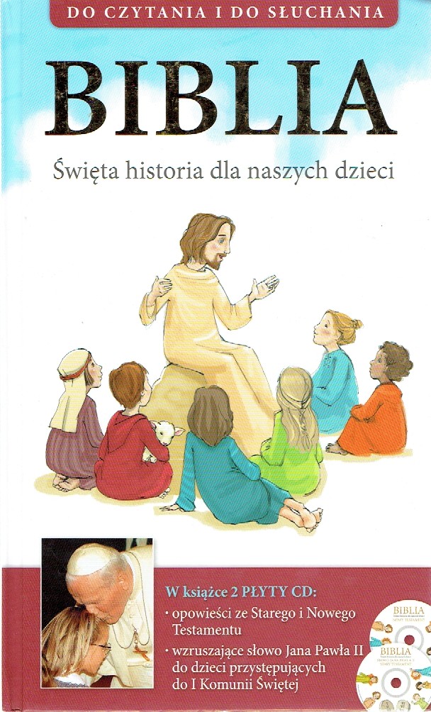 U dołu okładki: W książce 2 PŁYTY CD: opowieści ze Starego i Nowego Testamentu ; wzruszające słowo Jana Pawła II do dzieci przystępujących do I Komunii Świętej.