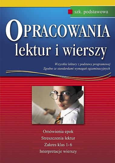 Seria Opracowania - język polski została napisana dla uczniów, którzy oprócz przeczytania lektury lub jej streszczenia potrzebują jeszcze wyjaśnienia problematyki utworu, charakterystyki występujących w niej postaci, przypomnienia faktów, słowem: interpretacji. Autorzy serii znacznie rozszerzyli omówienia poszczególnych tekstów literackich, po to, by nawet wymagający nauczyciel otrzymał od swego ucznia satysfakcjonującą odpowiedź. Doboru lektur dokonano na podstawie prowadzonych przez ostatnie lata ankiet oraz listów od czytelników. Dzięki temu jest on z pewnością trafny i odpowiada zapotrzebowaniu uczniów. Książki z tej serii doskonale spełniają też rolę prywatnego, osobistego korepetytora, który tłumaczy zawiłości literatury polskiej i obcej. Zakres całej szkoły podstawowej. Wszystkie lektury z podstawy programowej, zgodne ze standardami wymagań egzaminacyjnych, Omówienia epok, Streszczenia lektur, Interpretacje wierszy.