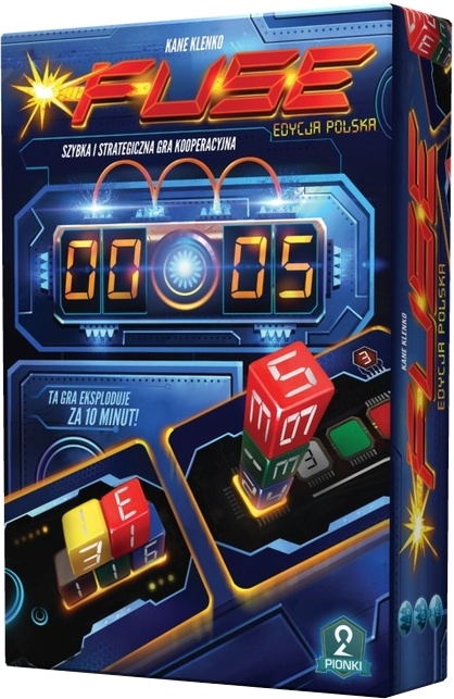 "Fuse" to kooperacyjna gra, w której wcielicie się w śmiałków, zmuszonych poradzić sobie z wieloma przemyślnie zabezpieczonymi bombami. Na szczęście do dyspozycji macie aż 25 kostek w pięciu różnych kolorach. Zacznijcie od wyboru poziomu trudności - od tego będzie zależało, z iloma ładunkami przyjdzie się wam zmierzyć (w ten sposób ustalacie liczbę kart w talii bomb). Przed każdym graczem rozkładacie dwie bomby, a dodatkowe pięć dobrane z utworzonej wcześniej talii na środku stołu. Włączacie licznik i... start! Pierwszy gracz wyciąga z woreczka tyle kostek, ilu jest uczestników - każdy z was kolejno decyduje, gdzie położyć jedną z nich. Po wyczerpaniu kostek następna osoba dobiera kolejny zestaw z woreczka i tak aż do końca gry. Komunikujcie się, podejmujcie wspólnie decyzję, ale pamiętajcie o upływie czasu. Tylko rozbrojenie wszystkich bomb da wam wygraną! Dlatego najważniejszą rzeczą w "Fuse" jest zgrana drużyna, która rozumie się bez słów i nie traci cennych sekund na bezsensowne kłótnie.