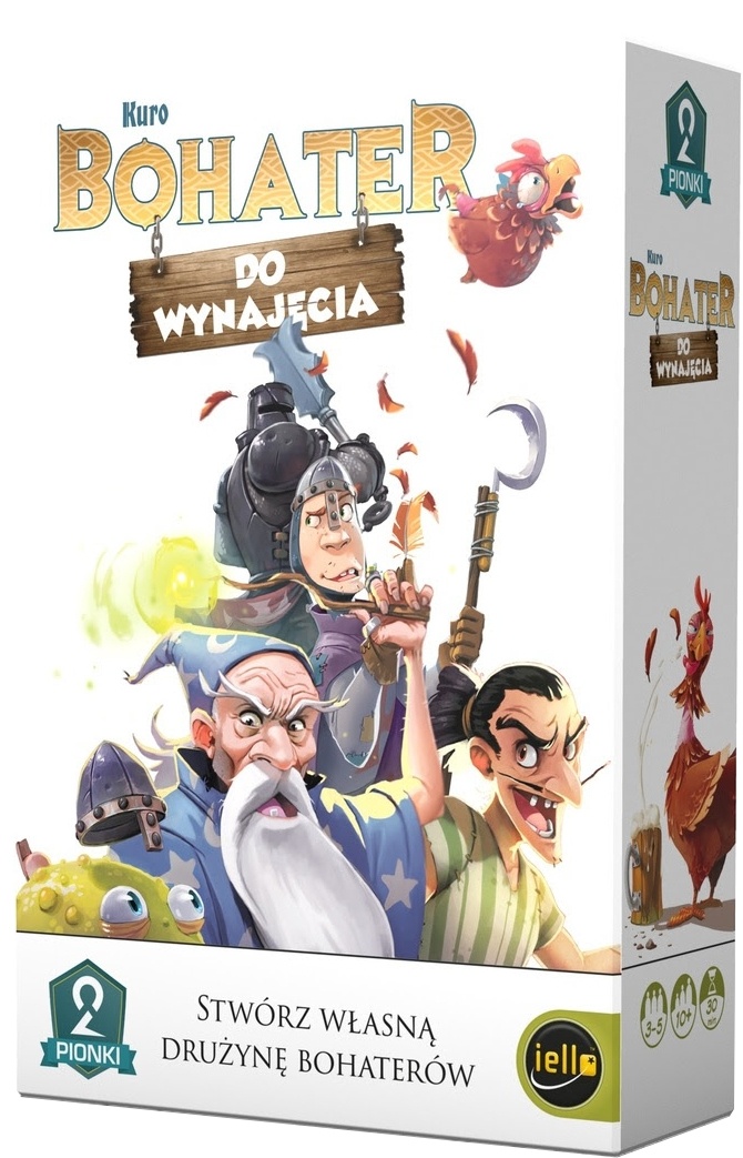 "Bohater do wynajęcia" wrzuca Was w wir szaleńczej zabawy, w której jako pierwsi musicie nająć 6 rożnych bohaterów. A nie będzie to takie łatwe. Piromani, wiedźmy, czarni rycerze i wszędobylskie wściekłe kurczaki... zabawa gwarantowana! Na początku gry każdy z graczy otrzymuje dwóch herosów w swojej drużynie i pięć kart na ręce. Rozpoczynający rozgrywkę odsłania pierwszą kartę ze stosu i na podstawie zawartych na niej informacji wybiera Wędrującego Bohatera. Przekazuje go (zakrytego) kolejnemu graczowi. Ten może go przyjąć do swojej drużyny, lub podać dalej. Uważajcie! Jeśli przyłączycie do swojej drużyny bohatera, który już w niej jest, obie karty muszą zostać odrzucone. Gracz, który ma 6 różnych bohaterów, natychmiast wygrywa grę. Jeśli w talii nie ma już więcej kart, a nikt nie zwerbował 6 różnych bohaterów, rozgrywkę wygrywa ten, kto najął ich najwięcej.