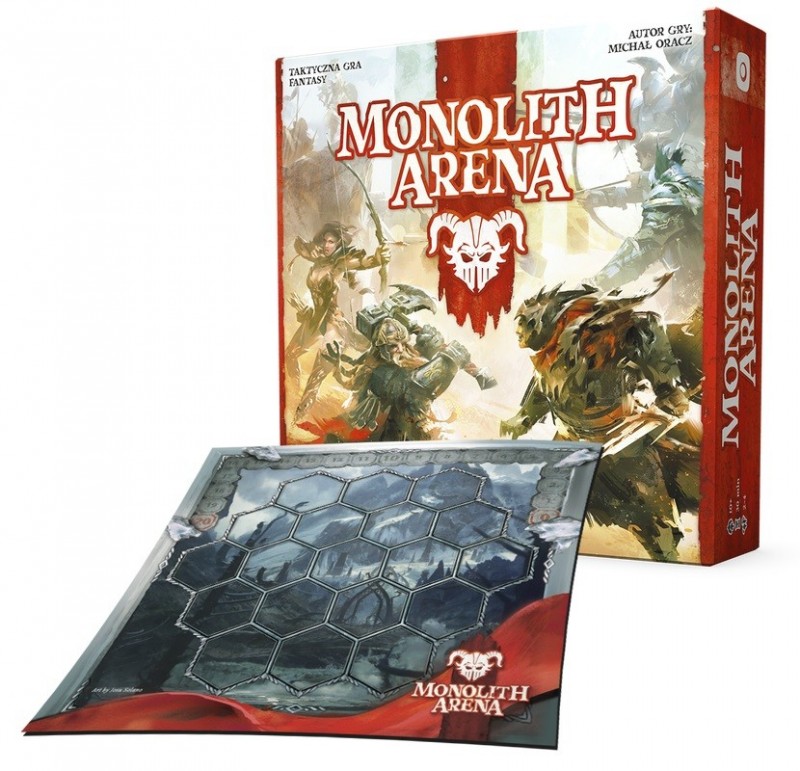 Monolith Arena : taktyczna gra fantasy / autor gry [projekt gry] Michał Oracz ; projekt graficzny Ewa Kosytorz, Rafał Szyma ; ilustracje Jakub Fajtanowski, Aleksandar Mihailovic, Raypier Art, Nakarin Sukontakorn, Otto Szatmari, Bogdan Tufecciu. - Gliwice : Portal Games, copyright 2018. - 1 gra (1 plansza, 140 żetonów - po 35 na frakcję, 8 znaczników frakcji, 27 znaczników inicjatywy, 22 znaczniki ran, 4 żetony sojuszu, 1 znacznik aktywnego gracza, 16 innych znaczników, 12 plastikowych części Monolitu, 4 karty pomocy) : karton, tektura, plastik, kolor ; w pudełku 30x30x8 cm + instrukcja (22, [2] strony : ilustracje kolorowe ; 28x28 cm).