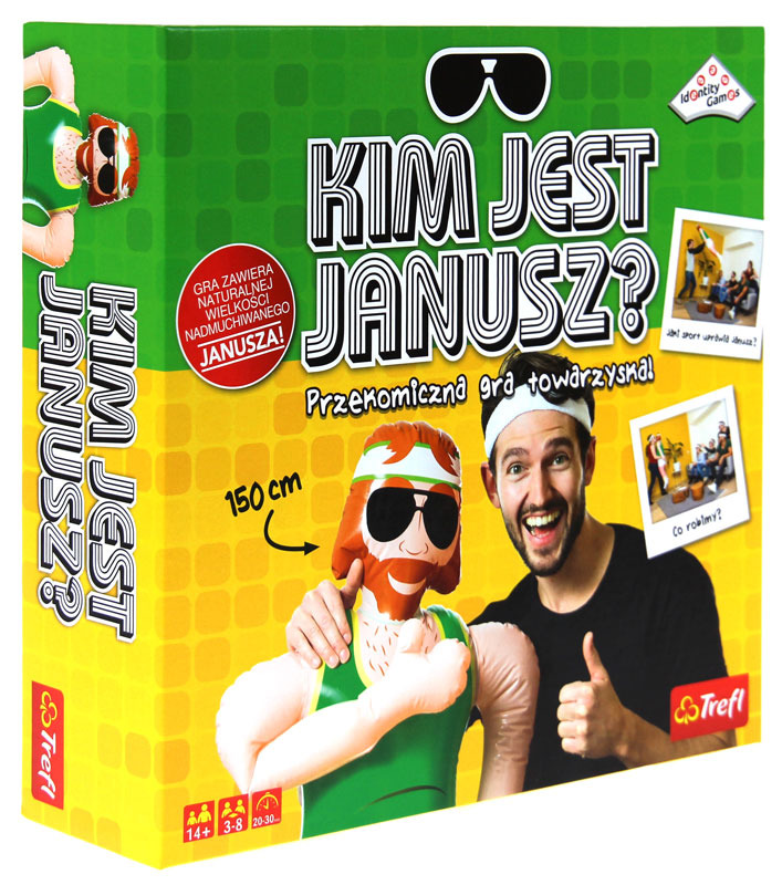 Kim jest Janusz? Janusz jest świetnym i zrelaksowanym gościem, który umie się odnaleźć w każdej sytuacji. Choć czasem bywa trochę nieporadny, to zawsze wychodzi cało z każdej opresji. "Kim jest Janusz?" to rewelacyjna gra towarzyska, w której rzeczywistych rozmiarów Janusz, będzie Waszym najlepszym kumplem! Waszym zadaniem będzie przedstawienie wspólnie z Januszem, jak największej ilości haseł w czasie 45 sekund. W rozgrywce będziecie mieli okazję wcielić się między innymi w sportowców, bohaterów znanych filmów i przedstawicieli różnorakich profesji. Zadaniem pozostałych graczy, będzie jak najszybsze odgadnięcie tego, co pokazujecie. Gracz bądź drużyna z największą liczbą punktów, wygrywa grę! A Janusz? Janusz jest zawsze zwycięzcą!